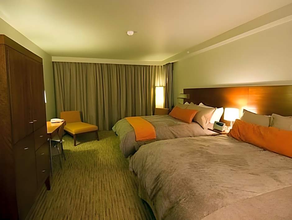 DELUXE VALLEY ROOM WITH 2 QUEEN BEDS is 280 square feet and includes 2 queen-size beds 150-154 width plus desk, hairdryer, tea and coffee making facilities , and ironing set.